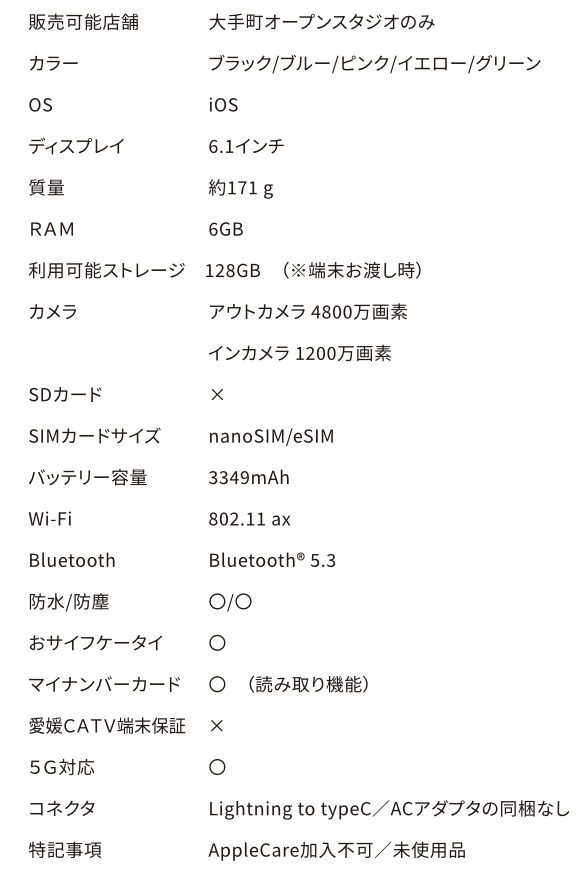 ●スマホ本体の紛失・盗難・焼損 ●バッテリーの減りが早い(端末購入から1年以上経過しているもの) ●ストレージ容量が足りない ●ご申告があっても店頭で確認できないもの(別端末で動画撮影いただくなどで対応できる場合があります。) ●本体を操作して改善する事象のもの