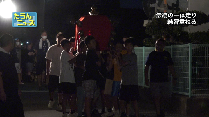 お祭りまで1週間をきった9月30日には、南組集会所に青年団の団員や地元の中学生ら、およそ50人が集まり、神輿の走り込みの手順や呼吸の合わせ方などを確認していました。