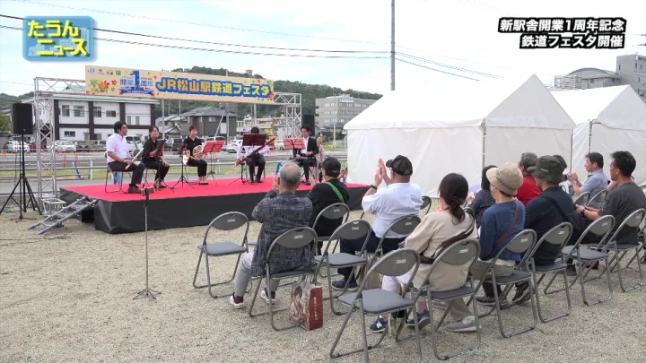 9月27日と28日の二日間、JR松山駅で鉄道フェスタが開かれました。JR松山駅の新しい駅舎が開業して、9月29日で1年です。これを記念し、会場では一周年限定のグッズ販売やステージイベントが行われました。