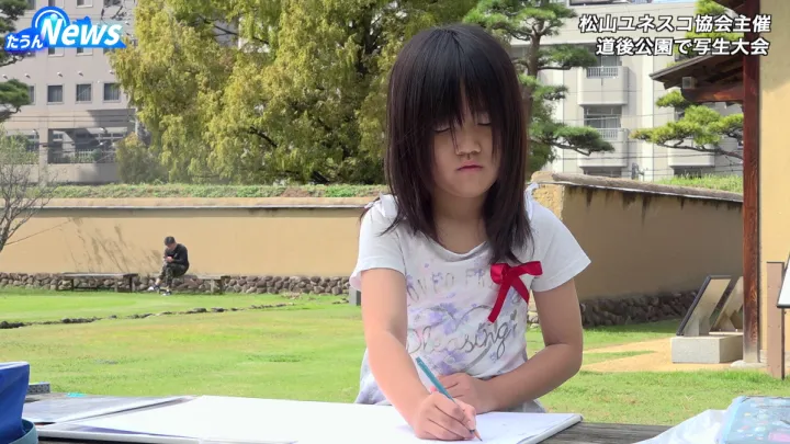 「絵で伝えよう!わたしの町のたからもの」が10月25日、道後公園で開催され、幼児から中学生までのおよそ30人が自由な感性で風景を切り取りました。