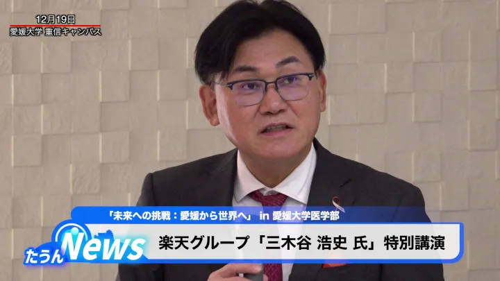 楽天の、三木谷 浩史会長の講演が19日、愛媛大医学部であった。AIが医療でも大きな役割を果たすようになるとし「ぜひ、アントレプレナーシップ(起業家精神)を持って世界で頑張ってほしい」と呼びかけた。