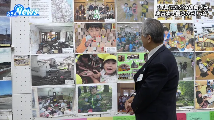 2011年3月11日の震災発生から15年となった11日、県美術館で現在の被災地の様子を写真などで伝える「東日本大震災15年の歩み展」が始まった。岩手、宮城、福島の3つの県の住民や地元新聞社、被災地復興に取り組む県内の支援者らから取り寄せた写真約480点を展示している。