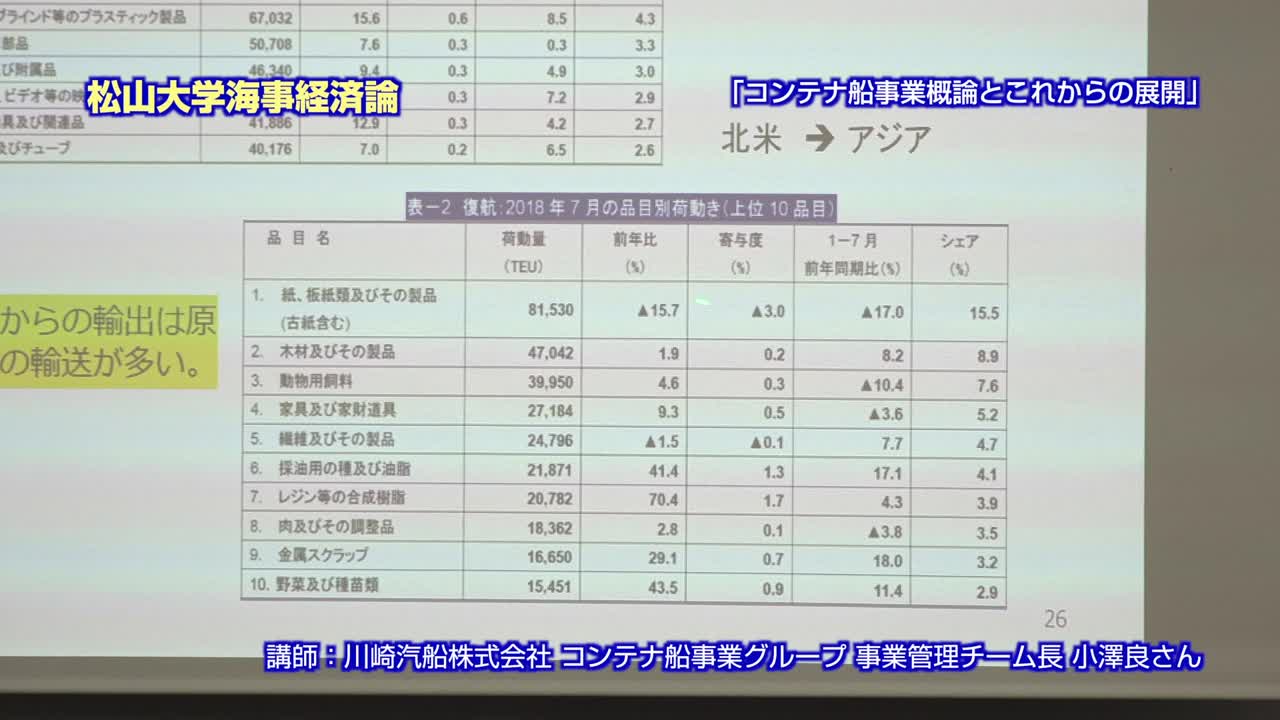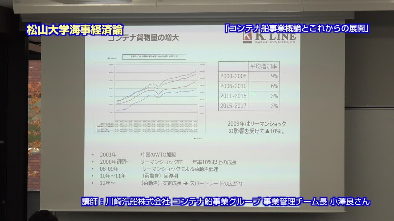 川崎汽船の小澤良氏が、コンテナ船事業の概要、運営方法、歴史、世界の荷動き量、現状と課題について講演する。特に、アジアと北米間の貿易や主要港の取扱量、業界の収入構造、サービスの差別化、M&Aの影響が取り上げられる。環境配慮や大型化、アライアンスの形成も重要なテーマである。