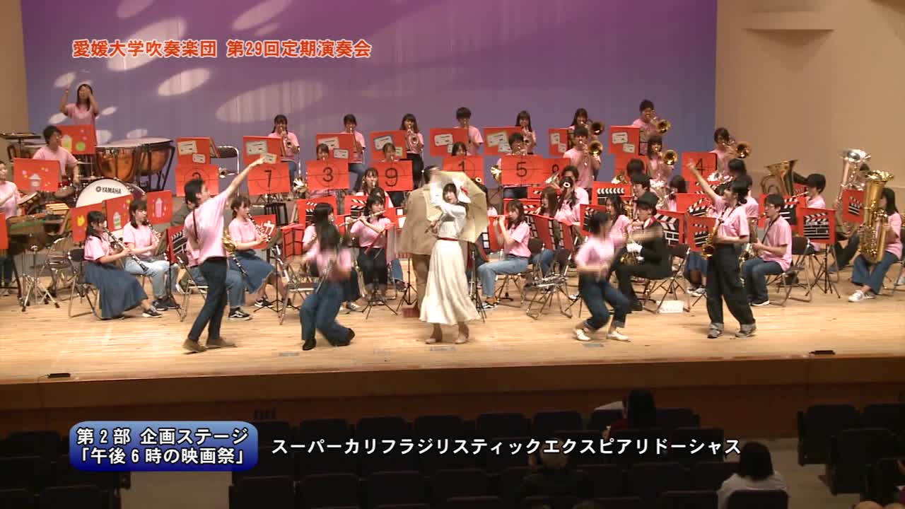 愛媛大学吹奏楽団の第29回定期演奏会が開催され、映画音楽を中心に多彩なプログラムが披露された。『キャンディード序曲』や『塔の上のラプンツェル』メドレーなどが演奏され、映画祭ではインディアナ・ジョーンズやディズニー映画のパフォーマンスも展開。演奏会は成功裏に終了し、次回のイベントへの期待が高まる。