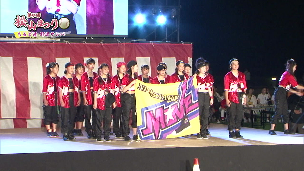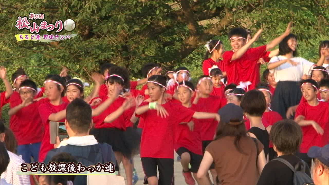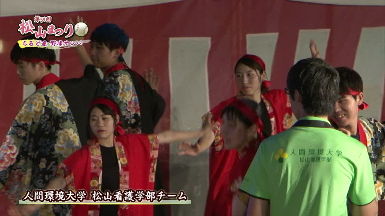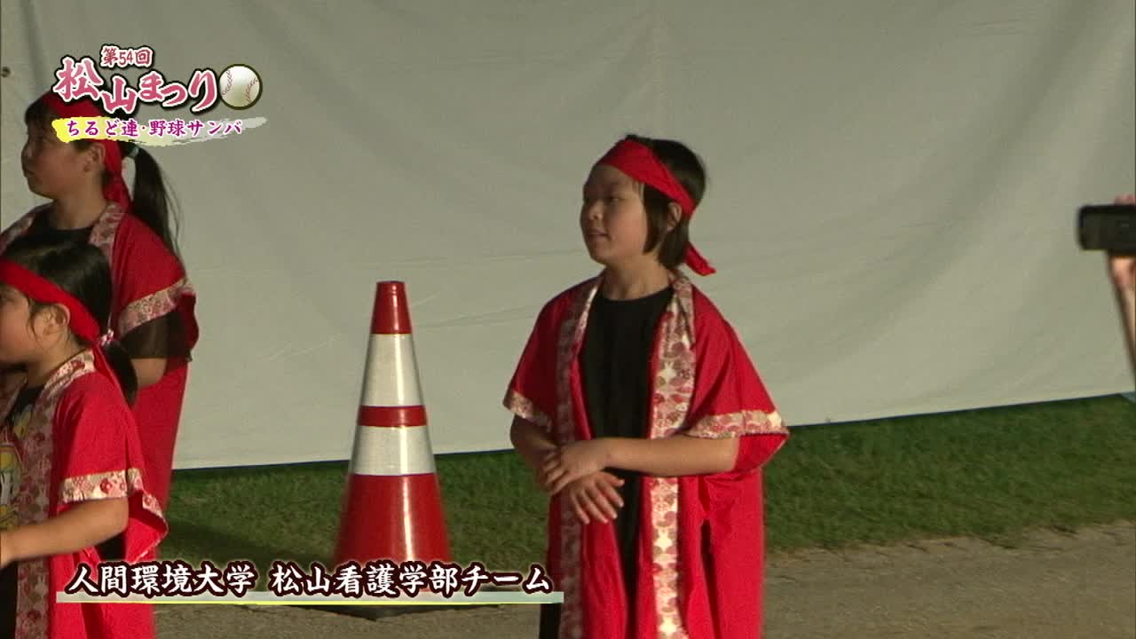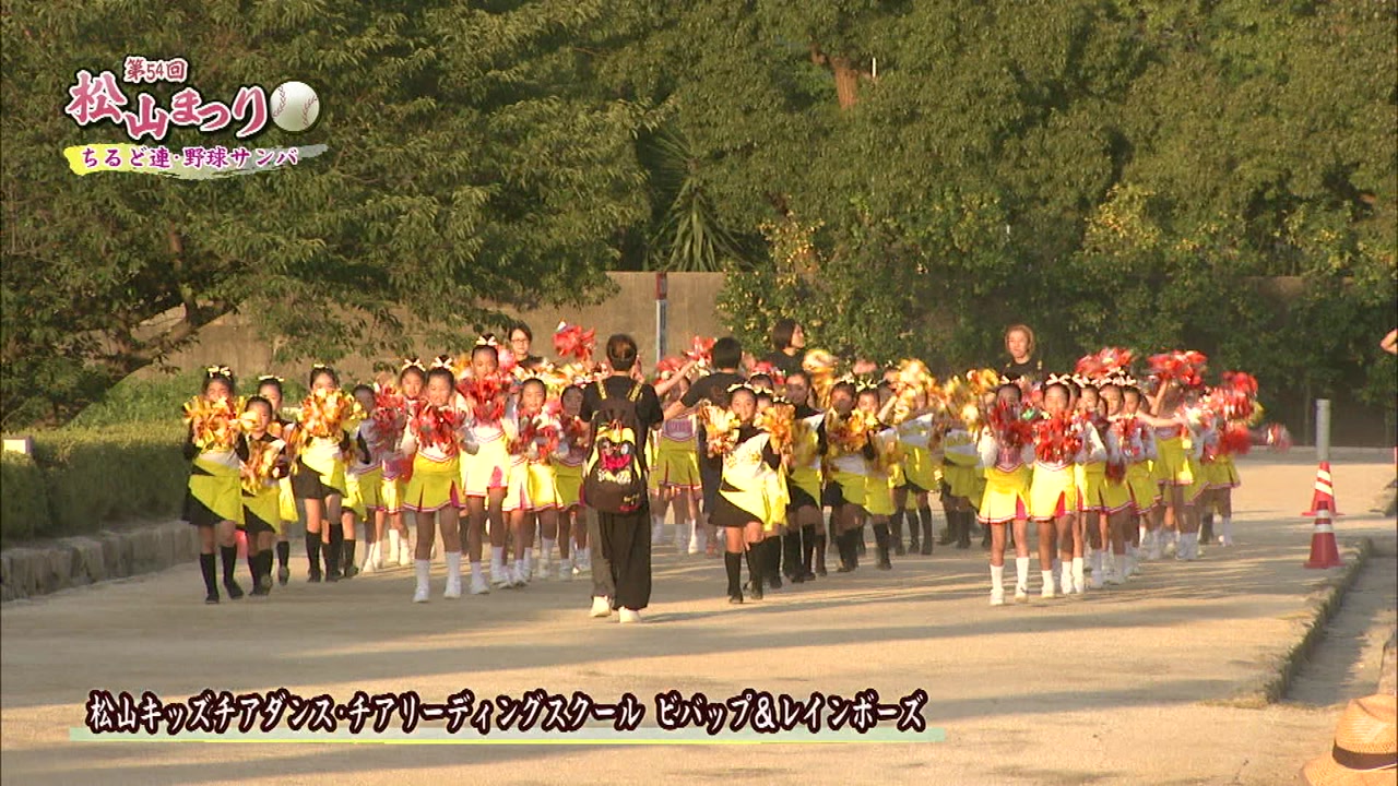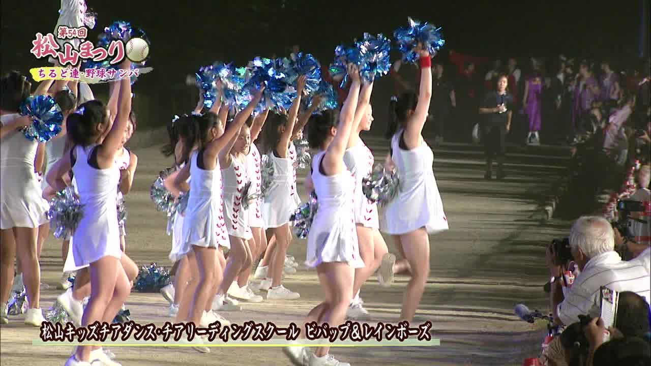 松山まつりでのチアダンスと野球サンバの紹介