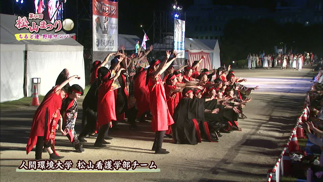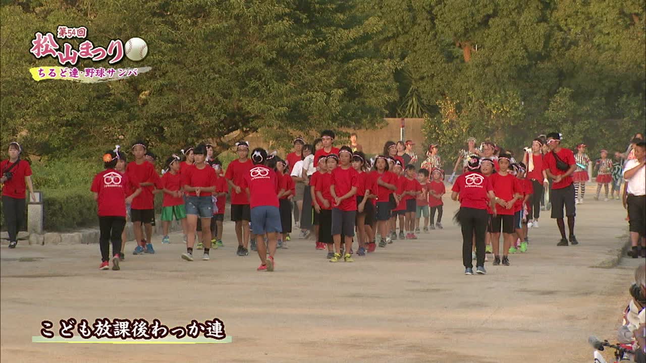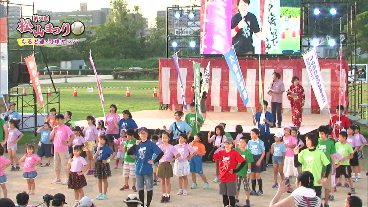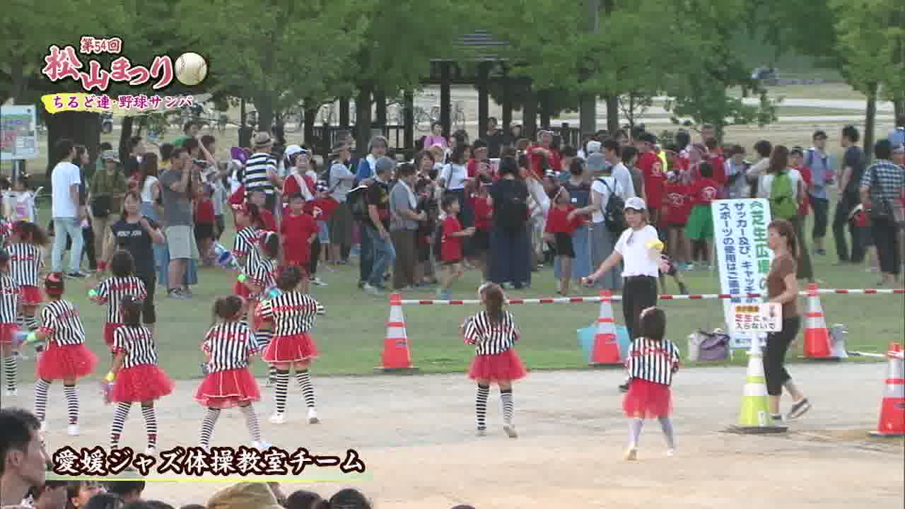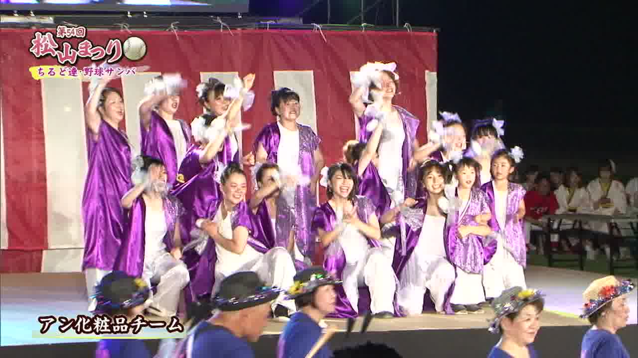 松山まつりでのチアダンスと野球サンバの紹介