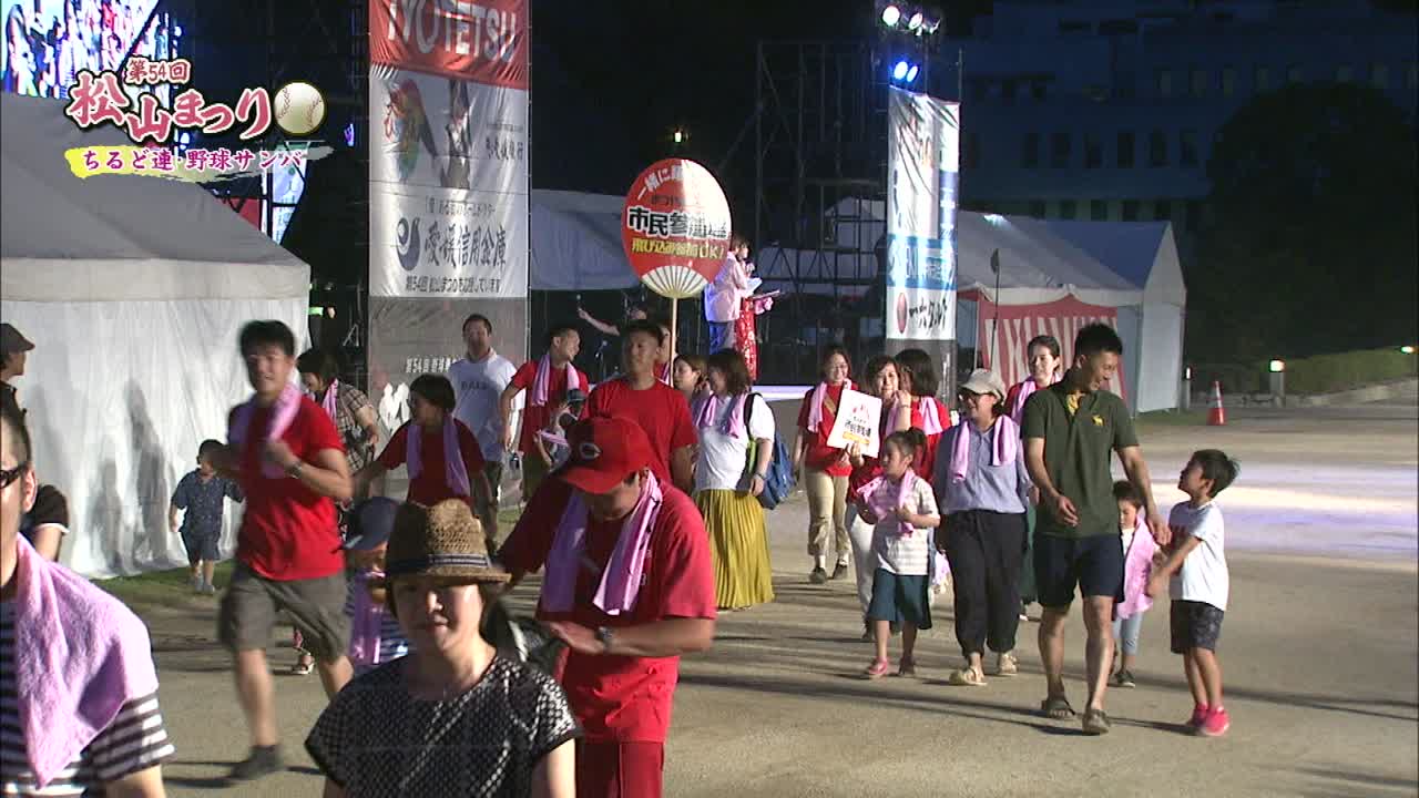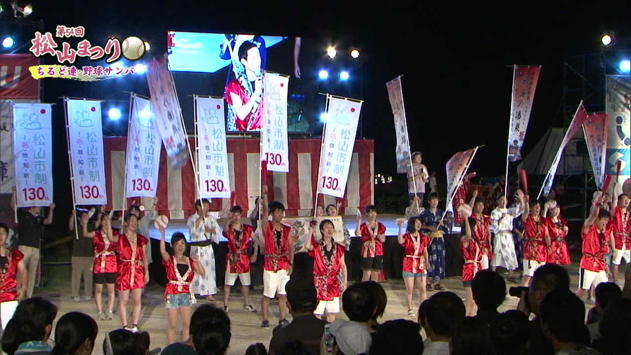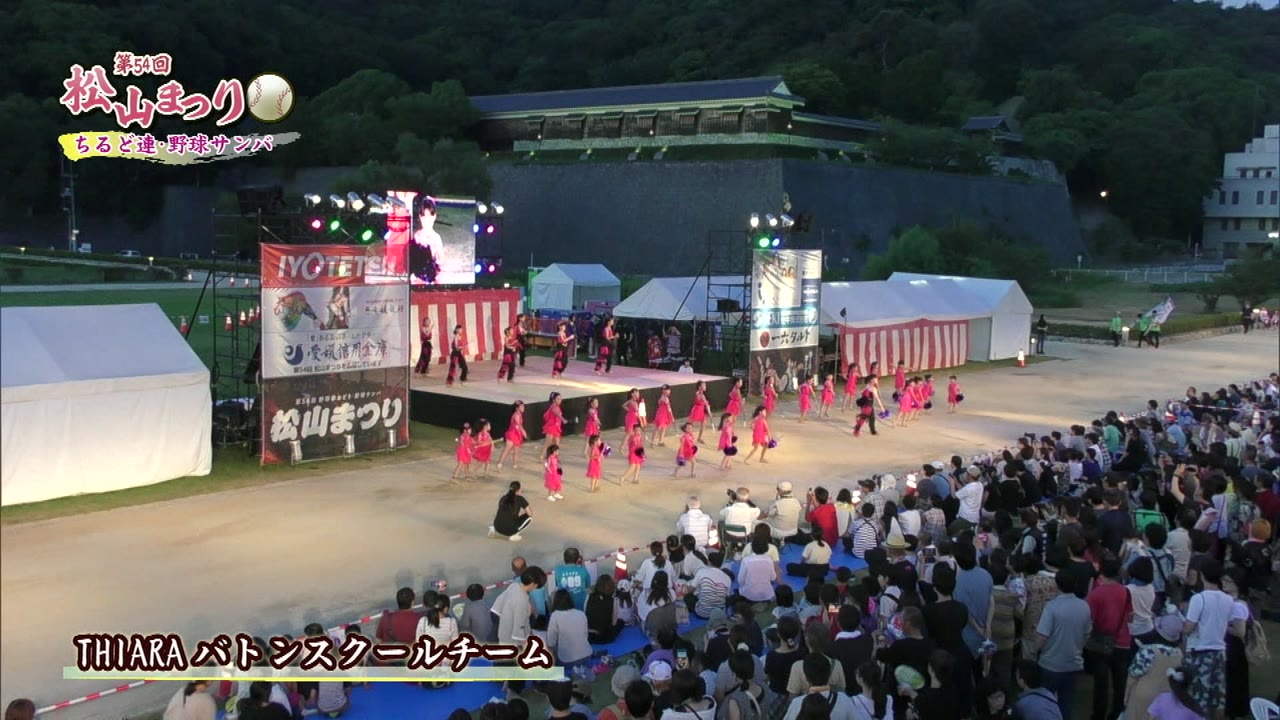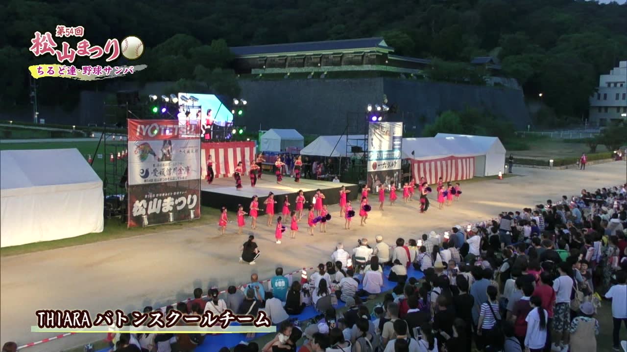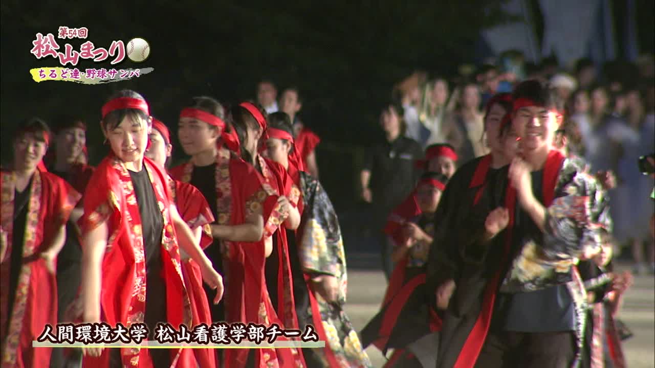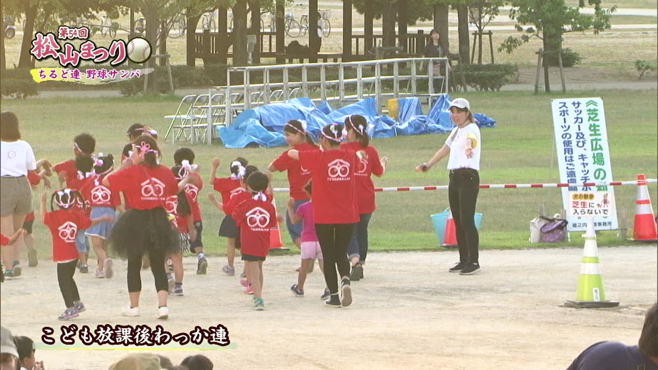 松山まつりでのチアダンスと野球サンバの紹介