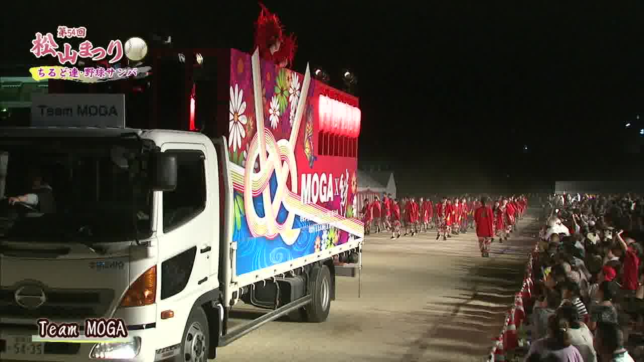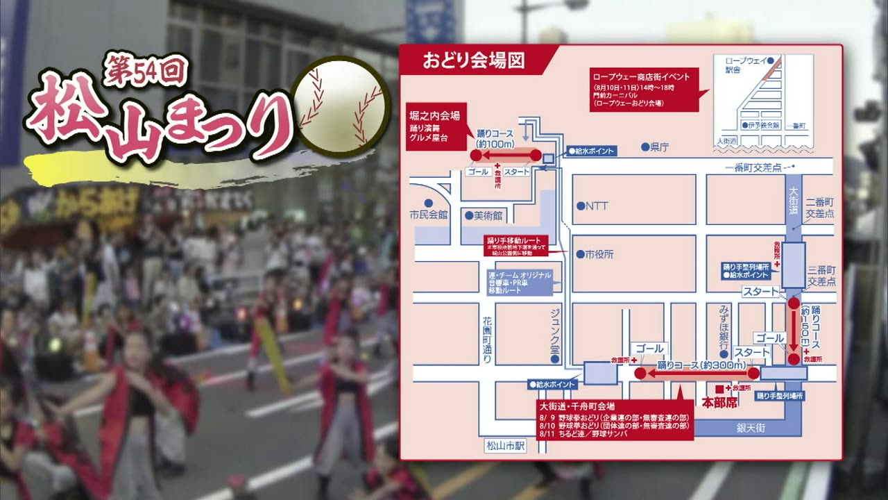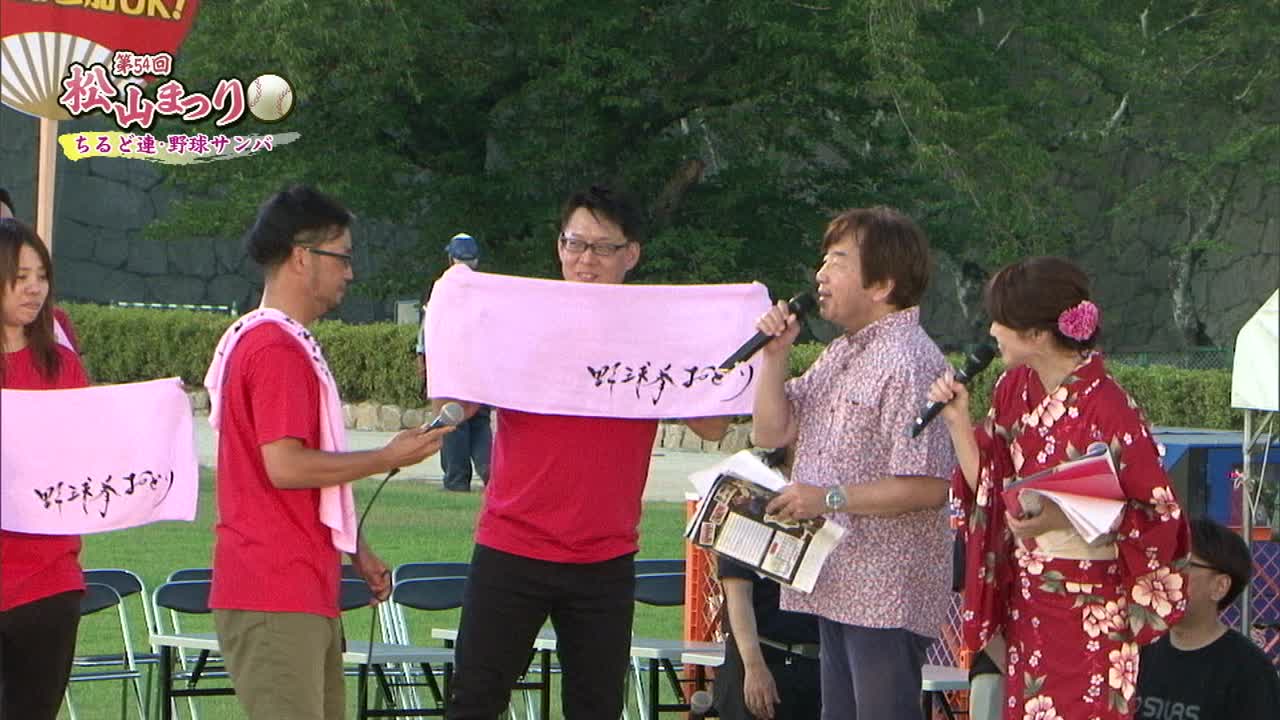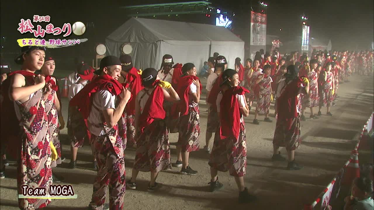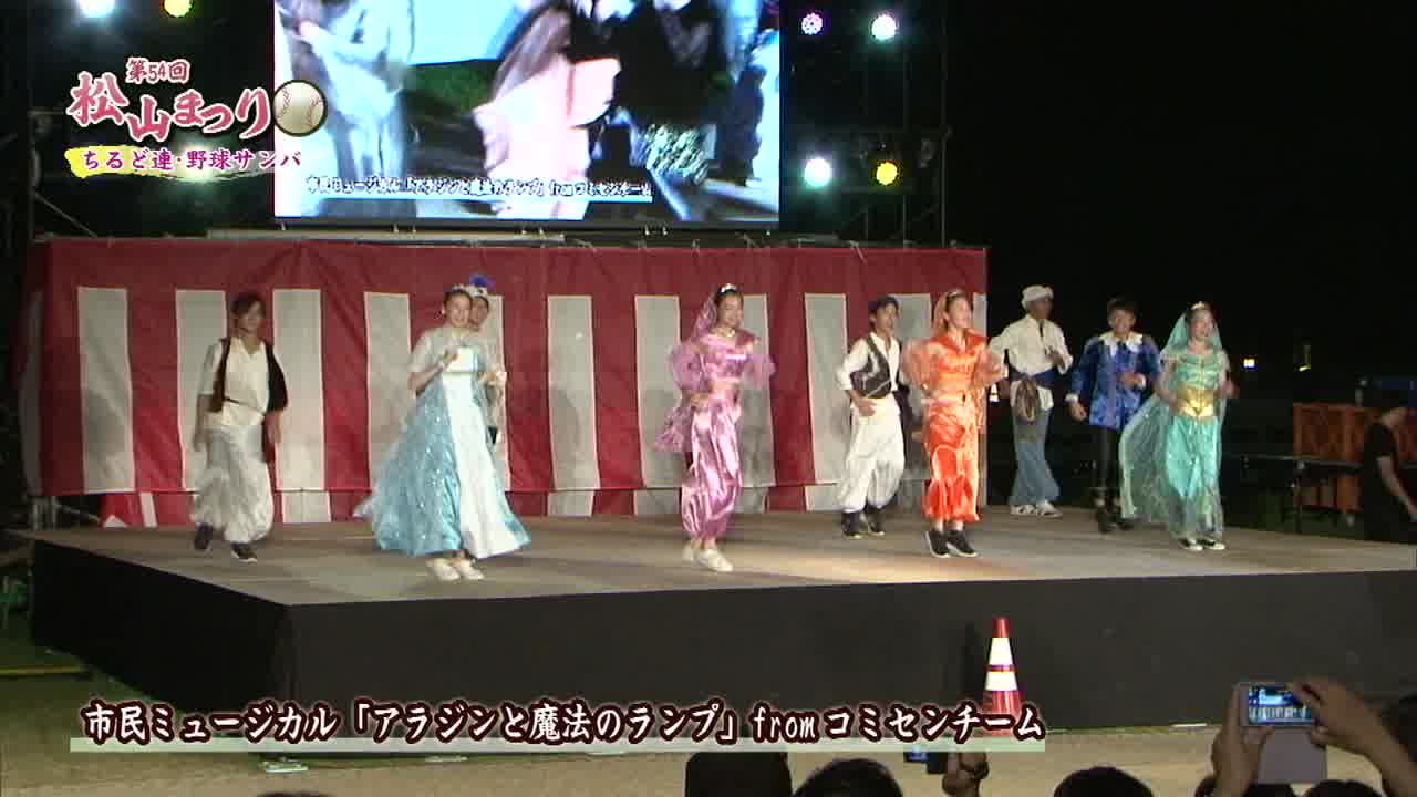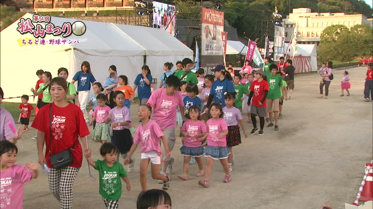 松山まつりでのチアダンスと野球サンバの紹介