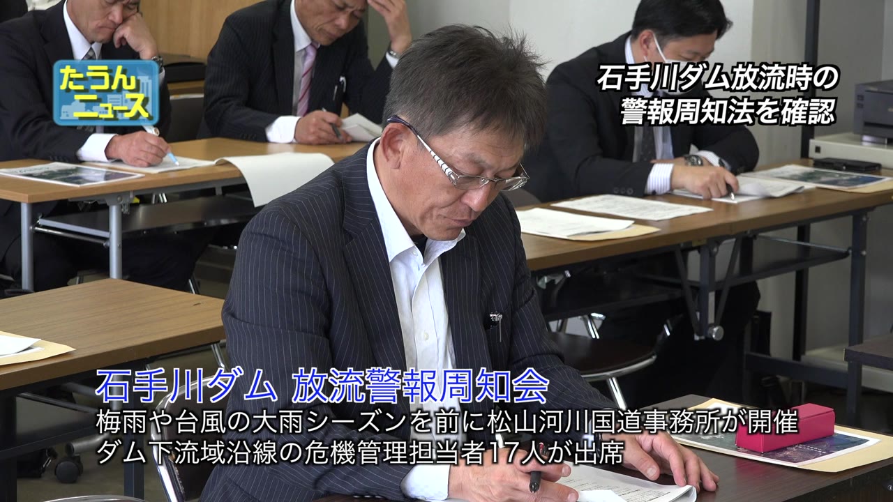 松山市で石手川ダム放流警報周知会が開催された。国土交通省が主催し、ダム下流域の学校や自治体の危機管理担当者が参加。警報の役割やアナウンスのタイミングが説明され、住民には情報収集と川への立ち入り禁止が呼びかけられた。5月25日にはサイレンの試験運転が予定されている。