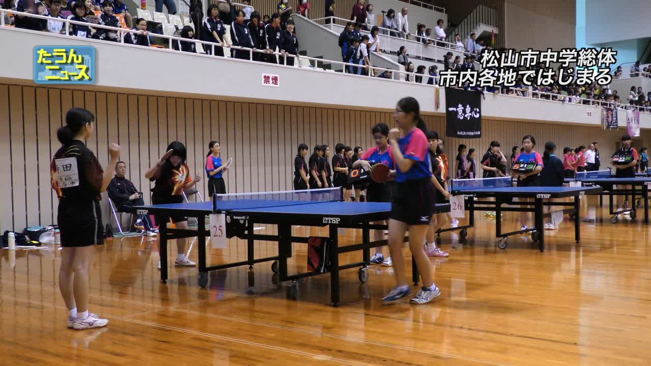 第71回松山市中学校総合体育大会が始まった。松山市内の中学生が参加し、技術やアマチュアスポーツ精神の向上を目指す。初日には卓球競技が県総合運動公園体育館で行われ、多くの選手が熱戦を繰り広げた。大会は6月21日まで続き、男子3131人、女子2144人が参加する。