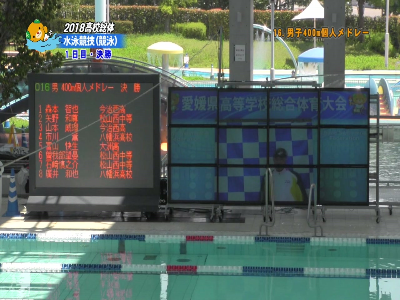 第72回愛媛県高等学校総合体育大会と2018年高校総体の水泳競技決勝が特集される。女子400m個人メドレーや男子1500m自由形の決勝が注目され、新記録や選手のパフォーマンスが紹介される。表彰式では愛媛県水泳連盟からの賞も贈られ、選手たちの活躍が称えられる。