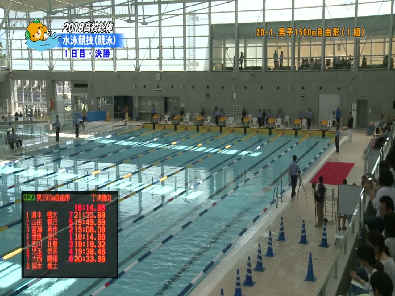 2018高校総体 男子1500m自由形競泳決勝の途中経過