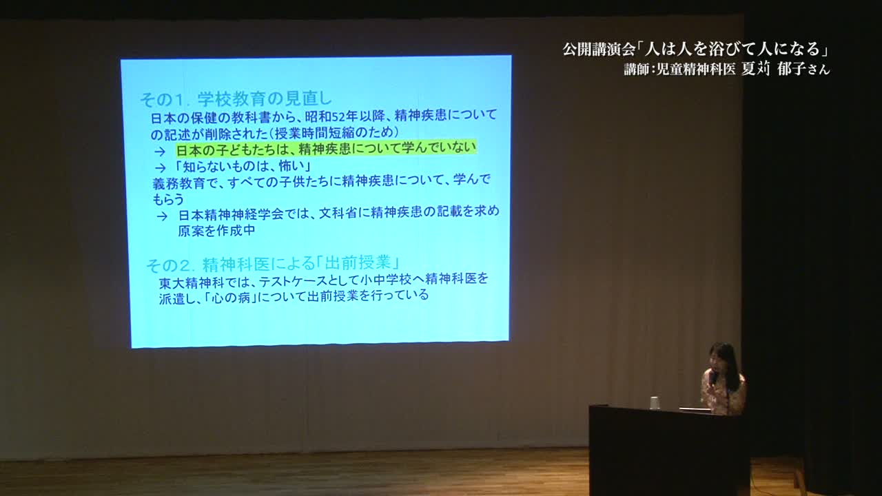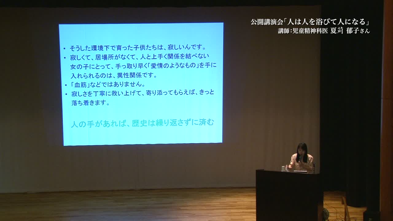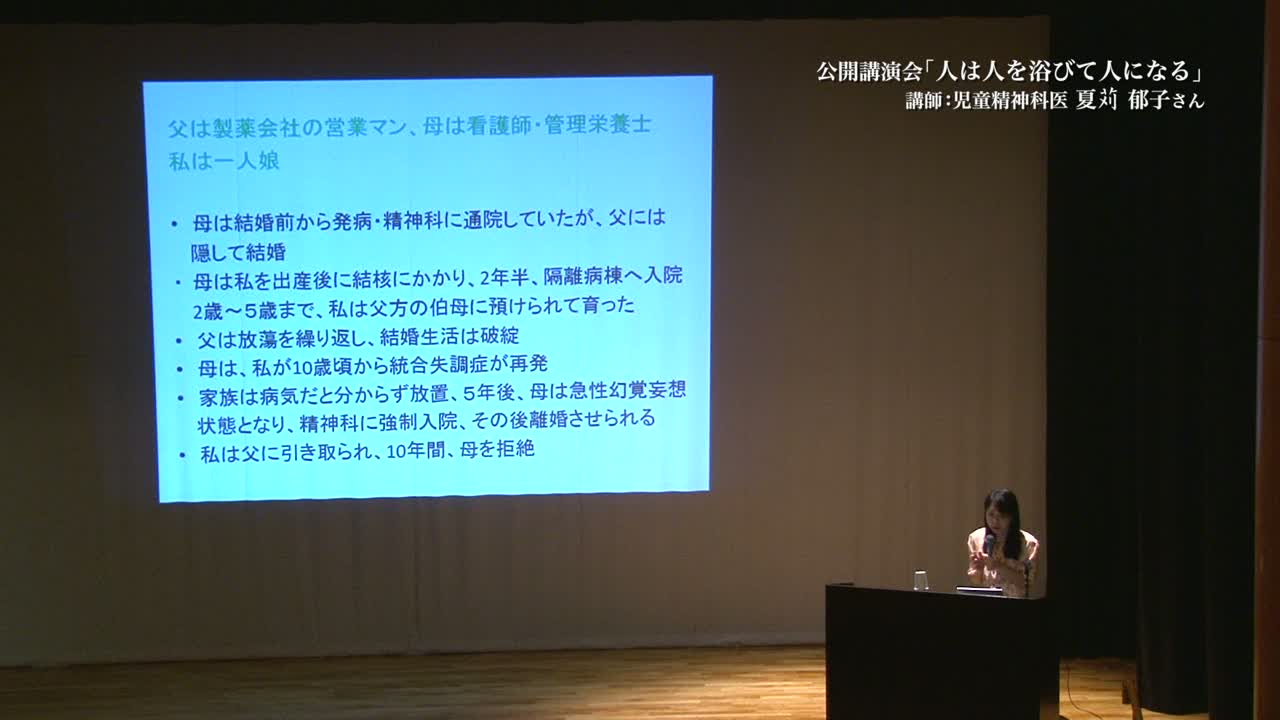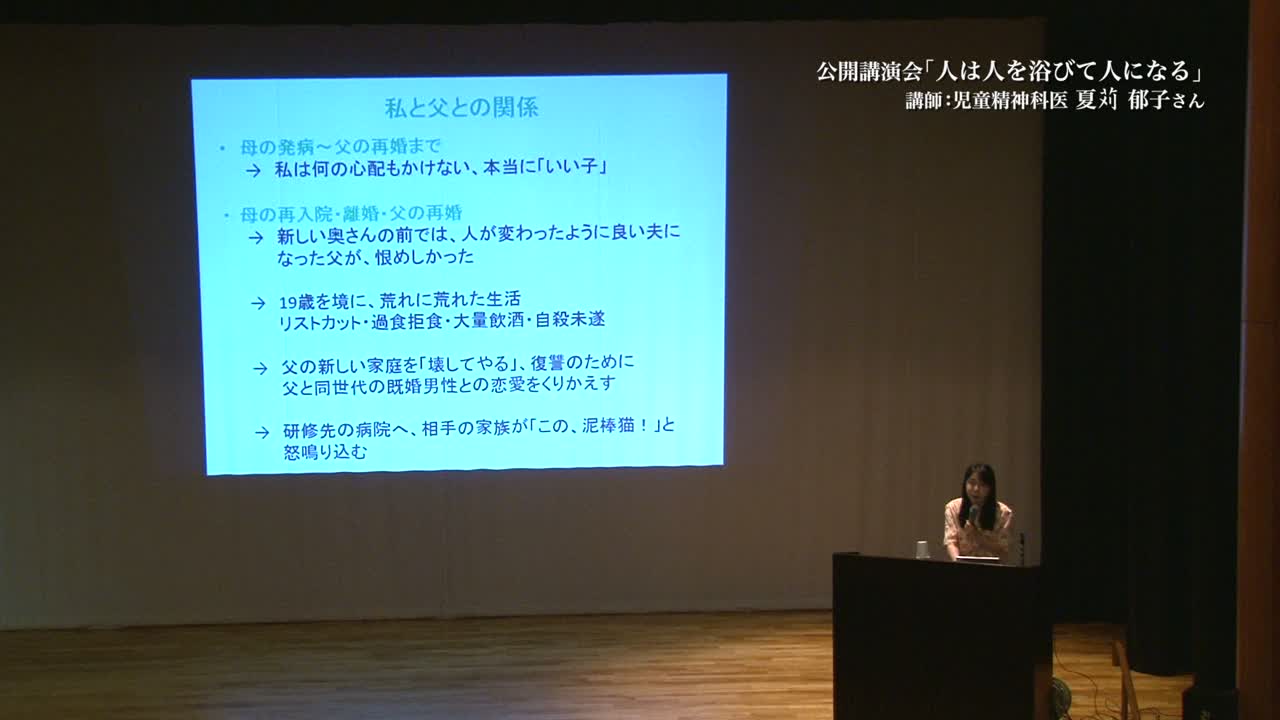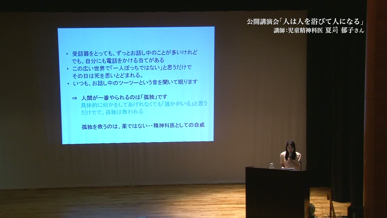 精神科医夏対郁子の講演: 人は人を浴びて人になる