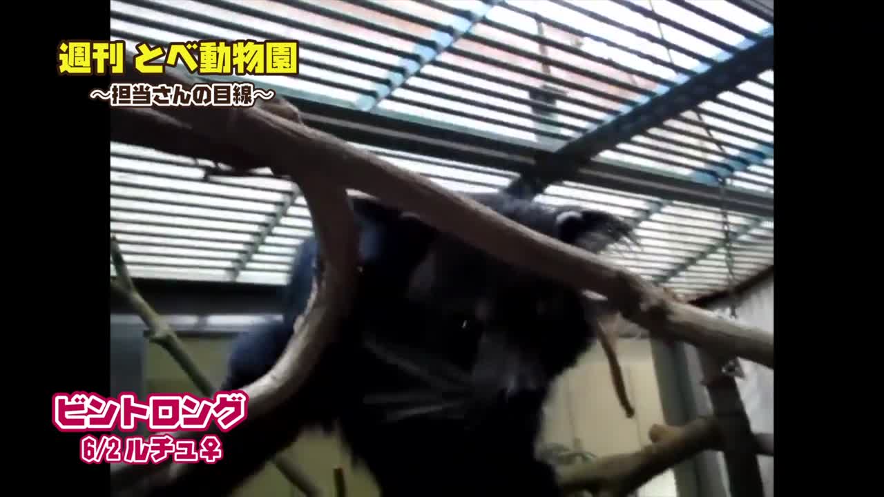 とべ動物園のビントロングと赤ちゃんザルを紹介するセクション。ビントロングの特徴や食性を詳しく解説し、バナナやリンゴが好物であることを紹介。赤ちゃんザルの成長過程も取り上げ、母親や姉からの愛情を受けて育つ様子を描く。動物たちの可愛らしさを強調し、視聴者に動物園訪問を呼びかける。