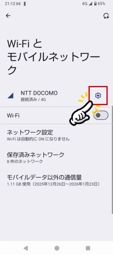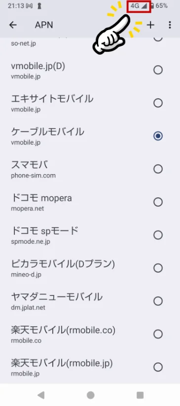 STEP4 画面右上のアンテナに4Gが表示されれば設定完了