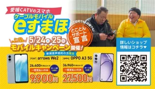 おしらせ お知らせ 年末年始 ケーブルショップ全店キャンペーンのお知らせ 2025/12/11 おしらせ お知らせ オトナライフマガジンOTOKU 12月号掲載記事に関するお詫びと訂正 2025/12/5 おしらせ お知らせ 【ケーブルモバイルeすまほ】契約通信容量超過時の通信速度一部変更のお知らせ 2025/12/5 おしらせ お知らせ 年末年始営業日のお知らせ 2025/12/5 おしらせ 報道資料 お知らせ 2025年8月5日から9月21日までの間の豪雨及び暴風雨により被災されたお客様に対する電気料金の特別措置について 2025/12/3 おしらせ お知らせ 無線インターネットサービス【eねっとAir-LITE-】サービス名称変更のお知らせ 2025/12/1 おしらせ 報道資料 報道資料 忽那諸島エリアで松山市との連携プラン 「まつやま里島eねっと」開始のお知らせ 2025/11/21 おしらせ お知らせ 年内の工事受付について 2025/11/18 おしらせ 報道資料 報道資料 愛媛県警察と連携し犯罪抑止のための「防犯ステッカー」作成 2025/11/18 おしらせ お知らせ eSIMへのご変更受付開始について 2025/11/17 1 2 3 … 12 次へ